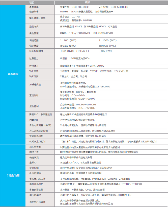 內(nèi)置直流電抗器 矢量控制下高速輸出 整機(jī)溫升測(cè)試 過勵(lì)磁功能