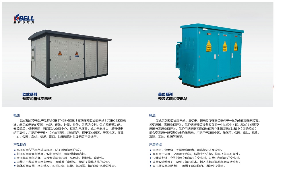 歐式箱式變電站產(chǎn)品安裝簡單,供電迅速,可以深入負荷中心,提高供電質(zhì)量,減少電能損失,增強供電的可靠性。