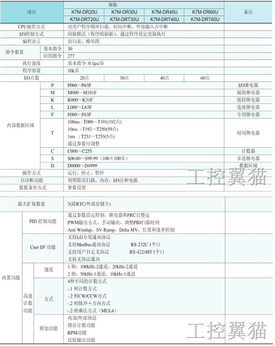 -總共可擴(kuò)展到70點(diǎn)(可以連接2個(gè)擴(kuò)展模塊;僅可以連接一個(gè)通訊模塊)